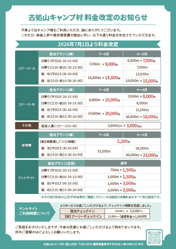 平素より当キャンプ場をご利用いただきまして誠にありがとうございます。
